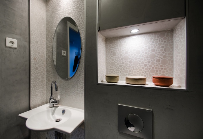 Le wc a été transformé en véritable salle d’eau : un travail sur la texture des surfaces et sur la lumière a permis de mettre en valeur chaque élément.