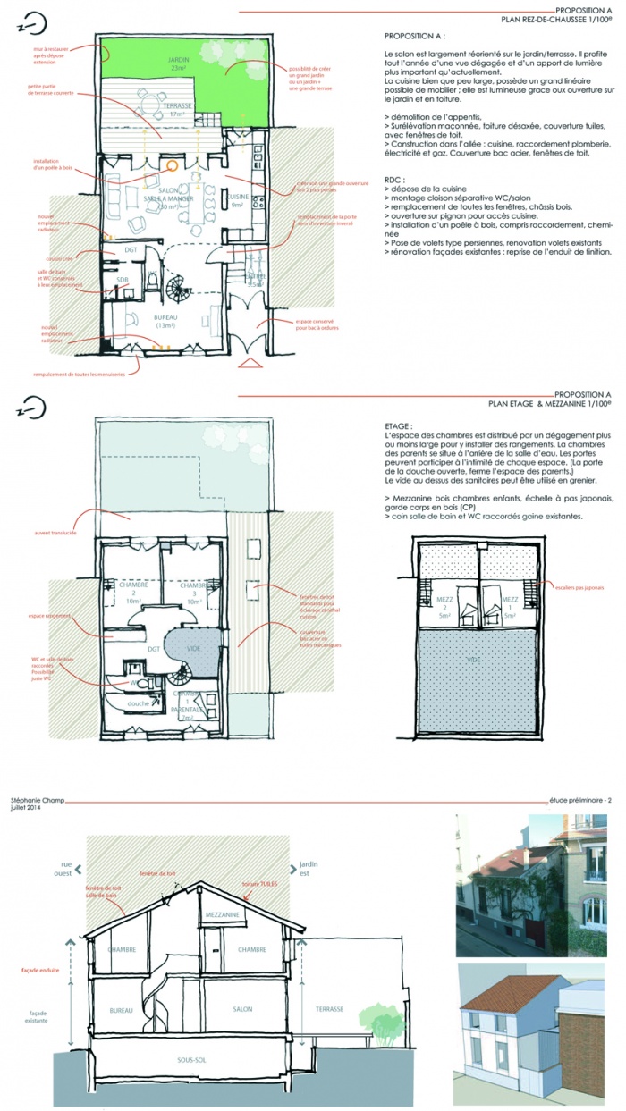 Projet de surélévation d'une maison individuelle dans un secteur sauvegardé.