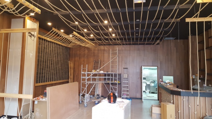 Dans le cadre de la réhabilitation des anciens entrepots du Boulevard Mac Donald. Nous avons été mandaté pour l'aménagement d'un restaurant Bo sushi