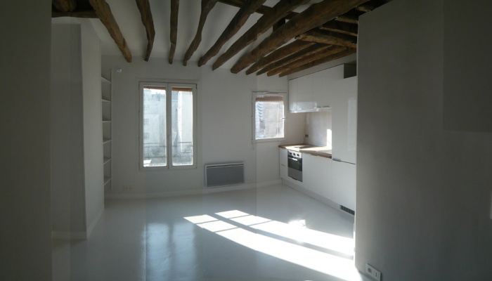 appartement traversant sous les toits trouve son intérêt dans la mise à nue et la conservation de la charpente